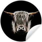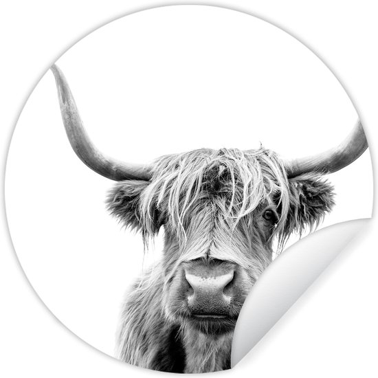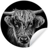 Wallpaper Circle - Scottish Highlander - Zwart - Wit - Animaux - 50x50 cm - Wall Circle