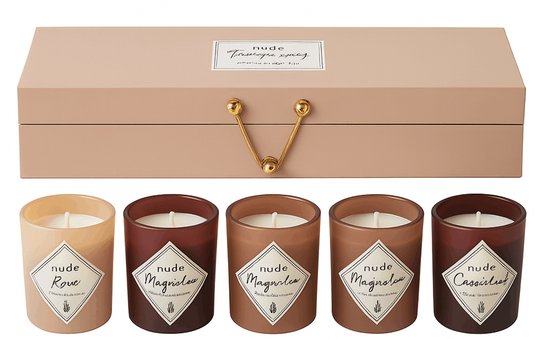 WDMT Bougies Coffret Cadeau - 5 Pièces - Emballage Bougies Set de Bougies - Coffret Cadeau avec 6 Bougies - Bougies parfumées de Luxe - Beige