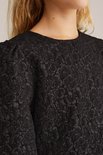 Illumine n'importe quelle outfit . Ce haut a une coupe confortable, des manches bouffantes joyeuses et une structure intégrale de fleurs brillantes. Perfect pour les fêtes et plus encore.