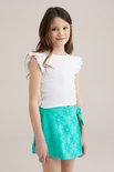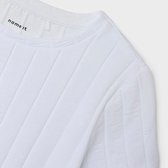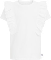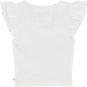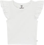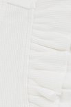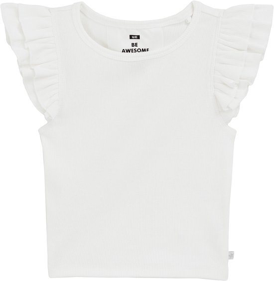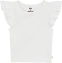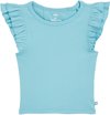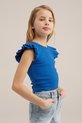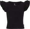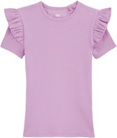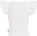 Ce T-shirt coupe slim est fabriqué à partir d'un mélange de coton élastique et présente une structure côtelée tendance et une coupe courte. De plus, l'article présente des manches courtes avec volants et un col rond.