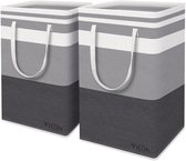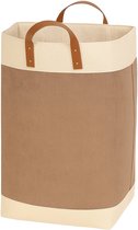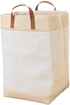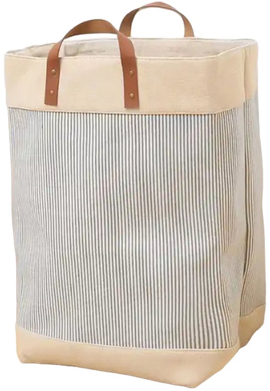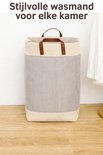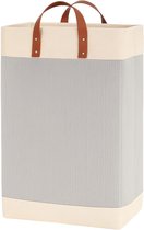 Webzon – Panier à linge – Paniers à linge – Panier à linge pliable – Panier à linge pliable – 30×35×55 cm – Design anglais – Tissu jute avec poignées en cuir – Panier de rangement – Pliable et gain de place – Gris crème