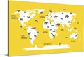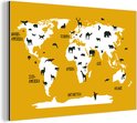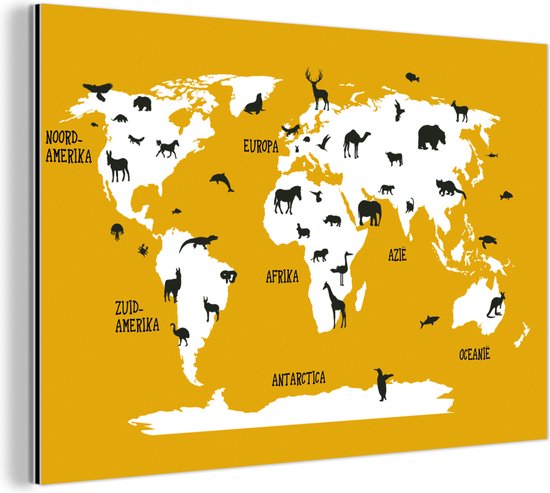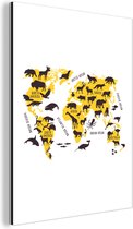 Wereldkaart avec des animaux sur fond jaune vif Aluminium 180x120 cm XXL / Groot format!