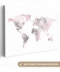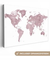 Wereldkaart avec des bandes de peinture violettes sur fond blanc 30x20 cm