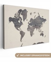 Wereldkaart avec pays gris avec un motif texturé 120x80 cm