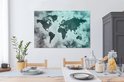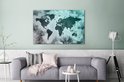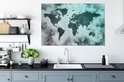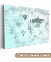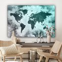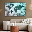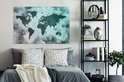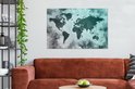 Wereldkaart avec peinture bleu clair et grise sur fond avec motif texturé 140x90 cm