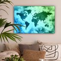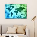 Wereldkaart avec peinture bleue qui passe au vert sur fond avec motif texturé 60x40 cm
