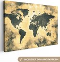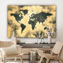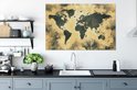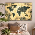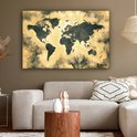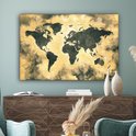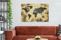 Wereldkaart avec peinture gris foncé et sable sur fond avec motif texturé 120x80 cm