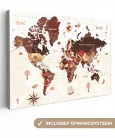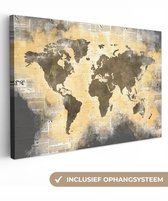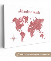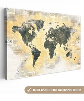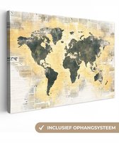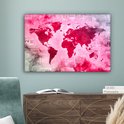 Wereldkaart avec peinture rose vif sur fond avec journal 90x60 cm