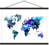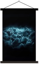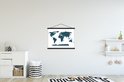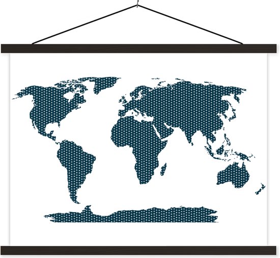 Wereldkaart croix bleues et pluses assiette scolaire lattes plates noir 60x45 cm - Tirage photo sur poster textielposter (décoration murale salon / chambre)