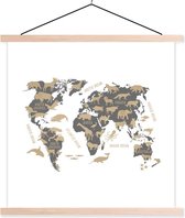 Wereldkaart du monde chambre d'enfant animaux plaque d'école lattes plates vierge 60x45 cm - tirage photo sur affiche textielposter (décoration murale salon / chambre)