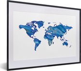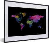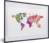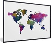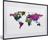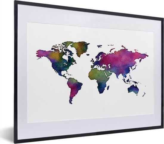 Wereldkaart en aquarelle avec des couleurs sombres sur fond blanc 30x20 cm