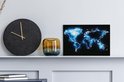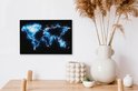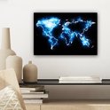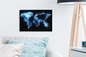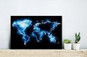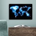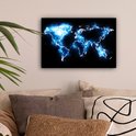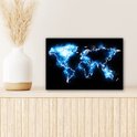 Wereldkaart en bleu électrique sur fond noir 30x20 cm