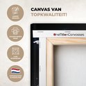 La photo est imprimée sur une toile robuste de 260 grammes de 0,41 mm d'épaisseur. Le lin est tendu étroitement sur un cadre en bois de deux centimètres d'épaisseur. Ce cadre en bois est en bois de pin certifié PEFC de qualité. Un système de suspension peut être commandé en option avec le produit pour fixer facilement l'impression au mur.