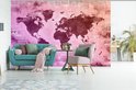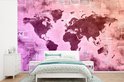 Wereldkaart en différents tons violets sur fond avec journal 420x280 cm