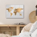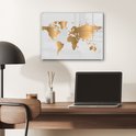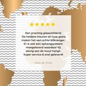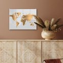 Luxueux, moderne et tout simplement un régal pour les yeux. Notre nouvelle carte du monde a tout pour plaire. Les tons dorés de l'imprimé sont joliment mis en valeur par le fond ondulé. Apportez les contours de tous les continents dans votre maison avec cette carte du monde. La carte convient à tous les matériaux et votre nouvelle décoration murale ne vous décevra certainement pas!