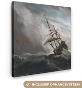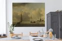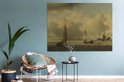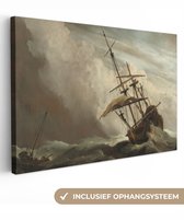 Willem van de Velde - Navires hollandais et petits navires au large des côtes dans un vent 160x120 cm - Tirage photo sur toile (Décoration murale salon / chambre) XXL / Groot format!