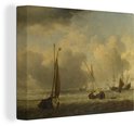 Willem van de Velde - Navires néerlandais et petits navires au large de la côte dans un vent 120x90 cm - Tirage photo sur toile (Décoration murale salon / chambre)