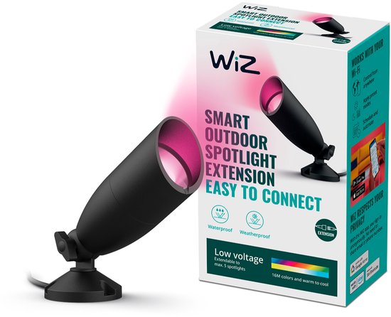 Laissez votre jardin briller dans vos couleurs préféréesAvec ce kit d'extension de spot au sol WiZ , vous donnez encore plus de couleur à votre maison et votre jardin. Le spot de sol WiZ est résistant à l'eau et aux intempéries (IP65) et très facile à installer. Collez le spot de sol dans le sol et branchez-le dans la prise. Il n'est donc pas nécessaire de creuser un câble d'alimentation supplémentaire dans votre jardin. Placez le spot au sol près de votre façade, le long de votre allée de jardin ou sous un arbre et orientez l'endroit exactement où vous avez besoin de lumière. Choisissez simplement une scène de lumière dynamique colorée pour une garden-party et optez pour une lumière blanche chaude lors d'un dîner romantique en plein air. Contrôlez les spots avec votre smartphone via l'application WiZ ou avec votre voix, même lorsque vous n'êtes pas chez vous. Ce kit d'extension ne peut être utilisé qu'avec le kit de démarrage WIZ Ground Spot.
