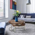 Chaque pièce est unique ! L'ensemble de table basse moderne de WOMO-DESIGN® avec ses tiges métalliques puristes et intemporelles convainc par son design minimaliste et attire le regard dans n'importe quelle pièce. Le plateau de table en planches de bois d'acacia brut travaillé avec son grain authentique et sa surface texturée, s'harmonise parfaitement avec la finition nickel de la structure en métal. L'ensemble est parfait comme table basse et peut être parfaitement mis en scène dans n'importe quel style d'intérieur. Les planches de bois d'acacia résistantes sont recouvertes d'une fine couche de laque et sont donc très faciles à nettoyer. Par conséquent, n'utilisez pas de produits de nettoyage agressifs et utilisez uniquement un chiffon doux et humide.