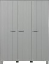 Cette armoire en pin fait partie de la collection WOOOD. Le Dennis est une penderie / armoire robuste avec des portes tournantes. L'intérieur de l'armoire se compose (zone de suspension) d'une large étagère en haut avec une tige en dessous. Sur le côté droit, vous avez trois étagères divisées. Les portes avec poignée en bois sont équipées de charnières métalliques solides. L'armoire est en bois de pin, pulvérisée dans la couleur gris béton et a une finition brossée. Lors du brossage des meubles en pin, le grain du bois est fortement accentué et une surface usée est créée. La série Dennis est disponible en deux tons de gris : gris béton et gris acier. Choisissez l'une des couleurs ou faites un mélange passionnant des deux couleurs grises. Créez la chambre parfaite avec cette série Dennis.