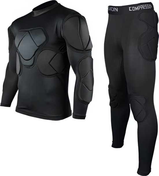 WoYoW® - Maillot et pantalon de gardien de but - Protection rembourrée - Respirant et léger - Logo personnalisé - Homme - Taille M - Manches longues Zwart