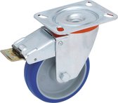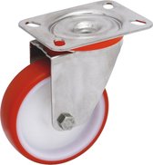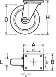 **Description :** Pneus en polyuréthane, jante en plastique Sans dispositif de blocage **Mode d'emploi :** 1. Moyeu avec palier lisse 2. Résistance : 80 ±4 Shore A 3. Roues en polyuréthane TPU 80A moulé par injection 4. Excellentes propriétés de glissement et d'élasticité, faible résistance au roulement 5. Bonnes propriétés d'amortissement du bruit et des vibrations 6. Bonne résistance à l'usure, longue durée de vie 7. Boîtier en tôle d'acier galvanisé électrolytiquement 8. Collier à double bille avec lubrification à la graisse 9. Anneau anti-poussière 10. Température d'application : -10°C à +70°C**Domaine d'application :** Convient aux environnements influencés par les intempéries, les alcools et les glycols, les acides organiques et minéraux faibles et l'eau. Pour une utilisation dans les ateliers, dans l'industrie chimique, dans la construction d'appareils, l'industrie textile et pour tous types d'équipements techniques.**Détails techniques :** - Diamètre du rouleau (D) : 100 mm - Largeur du rouleau (L) : 30 mm - Hauteur (H) : 128 mm - Capacité de charge : 120 kg - Longueur (A) : 100 mm - Largeur (B) : 85 mm - Espacement des trous (a) : 80 mm - Espacement des trous 2 (b) : 60 mm - Diamètre du trou oblong (c) : 9 mm - Min./max. Dureté Shore-A : 57-63 - Plage de température minimale : -15 °C - Plage de température maximale : 80 °C - Profondeur du trou de perçage (R) : 35 mm