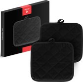 Ces maniques en cuir sont fabriqués à la main à partir de cuir de haute qualité. Ils ne sont pas seulement cool et beaux à regarder, mais garantissent surtout que vous ne vous brûlez pas les mains! Ils sont robustes, livrés dans un ensemble de 2 pièces, sont faciles à nettoyer avec un chiffon humide et donnent également une touche branchée à votre cuisine. Accrochez-les sur la boucle de suspension en cuir quelque part, à portée de main et bien en vue. Ces maniques peuvent être vus!