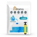 - Ouvrez le bouchon à vis et placez l'embouchure de l'aspirateur sur la soupape de turbo jusqu'à ce que le sac soit évacué. Ou utilisez la pompe manuelle fournie.