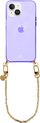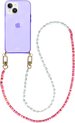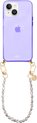 xoxo Wildhearts étui en silicone avec cordon - Étui de téléphone violet avec cordon - chaîne de téléphone - Pearlfection - court - Cord Case - convient pour Apple iPhone 14 - Collier de perles court