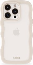 xoxo Wildhearts Wavy Mirror Case Étui de téléphone crème - Convient pour iPhone 16 Pro - Étui miroir ondulé - Étui Cloud - Antichoc - Étui Cloud - Étui en silicone avec miroir - Crème / Beige