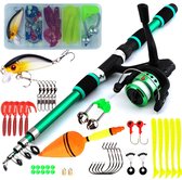 Canne à pêche enfant - Télescopique 1,8 m avec rouleau de rangement - Jouets complet et sûr - Ensemble de cannes à pêche pour débutants - Idéal pour la pêche en plein air - Modèle 2025 Vert - 1 pièce
