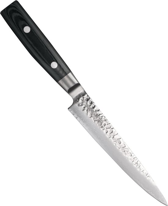 Yaxell a été fondée en 1932 et est connue au Japon comme producteur de couteaux de haute qualité. Le couteau à découper 15 cm du YaxellZen se distingue par la lame damassée à 37 couches avec noyau en acier trempé VG-10, qui garantit des performances de coupe durables. Chaque face est recouverte de18 couches acier inoxydable plié. Belle poignée en Canvas-Micarta noir chiné, attachée avec 2 rivets en acier inoxydable et embout.