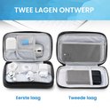 C'est un étui qui me tient à cœur : robuste, beaucoup d'espace pour les chargeurs, les câbles, les bouchons d'oreille et même 2 batteries externes. À travers les écrans, vous pouvez voir quel câble est où pour un bon aperçu. Très pratique pour voyager !