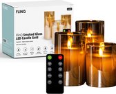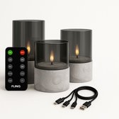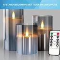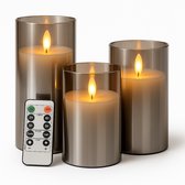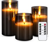YONO LED Kaarsen à Flamme Mobile - Avec Télécommande avec Minuterie et Fonction de Gradation - 3 Pièces - Verre Fumé
