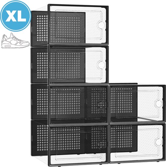 YONO Sneakerbox Set de 6 - Système de Rangement Chaussures pour femmes - Organisateur de Boîte à Chaussures - Étagère à Chaussures avec Porte - Transparent - 6 Pièces