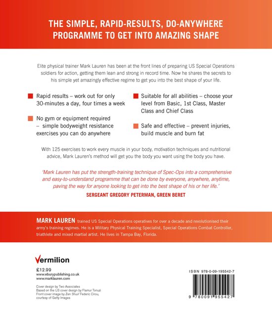 Elite trainer Mark Lauren has been at the front lines of preparing US Special Operations soldiers for action, getting them lean and strong in record time. Now, he shares the secrets to his simple, yet amazingly effective regimen to get you into the best shape of your life.