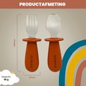 Youly® Couverts pour enfants Marron Rouille - Couverts Bébé - Sans BPA - Acier Inoxydable - Siliconen - Durable - Solide - Cuillère et Fourchette