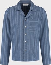 Yumeko chemise de pyjama dames velours flanelle denim bleu/rayure blanche xl