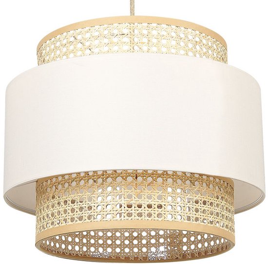 Lampe suspendue avec accent en rotin. Rafraîchissez votre intérieur avec cette lampe suspendue décorative. Le produit est livré avec un double abat-jour en rotin avec tissu semi-transparent de couleur classique. La longueur du câble peut être ajustée selon vos besoins. Un bel éclairage d'ambiance pour une ambiance agréable dans toute la pièce.