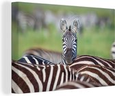 Toile de Zebra dans l'herbe 2cm 60x90 cm - Tirage photo sur toile (Décoration murale salon / chambre) / Peintures sur toile animaux sauvages