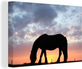 Cheval frison paissant au coucher du soleil 90x60 cm - Tirage photo sur toile (Décoration murale salon / chambre)