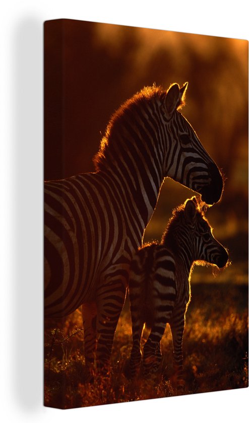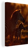 Zebra avec jeune toile 2cm 60x90 cm - Tirage photo sur toile peinture (Décoration murale salon / chambre) / animaux sauvages Peintures sur toile