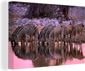 Boire des zèbres 90x60 cm - Tirage photo sur toile (Décoration murale salon / chambre) / Peintures sur toile animaux sauvages
