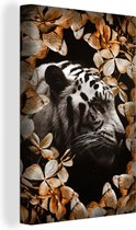 Toile Peinture Tigre - Zebra - Feuilles - 60x90 cm - Décoration murale
