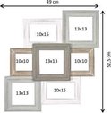 Le cadre peut accueillir 7 photos dans les tailles suivantes: 2 pièces 10x15, 2 pièces 10x10 et 3 pièces 13x13 . Les photos seront montées horizontalement et verticalement dans le cadre du collage. Les 7 photos peuvent être facilement insérées et échangées individuellement.
