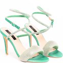 Les Zerba Laterina Verde sont de magnifiques escarpins de soirée chic en soie de couleur verte, décorés de pierres précieuses Swarovski et terminés par un talon stable et élégant de 10 cm. Avec ces chaussures vous ferez une entrée inoubliable ! Fabriqué en Italie.