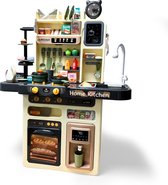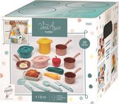 Donnez encore plus de vie à la cuisine des enfants avec cet ensemble de cuisine Zoem. C'est un excellent ajout très complet à une cuisine, mais les enfants peuvent également jouer avec sans cuisine. Cet ensemble est en plastique et pas moins de 60 pièces et varie de la plaque de cuisson aux casseroles et aux aliments. En fait, trop pour en parler. La photo qui l'accompagne en dit assez sur le contenu. La table de cuisson éclabousse et éclabousse vraiment (3 piles AA, non incluses), ce qui la rend encore plus réelle. Cet ensemble comprend également de petits articles (en particulier les aliments), la surveillance parentale est donc requise pour les très jeunes enfants. Vous pouvez bien sûr également conserver les plus petits objets pour plus tard, lorsque les enfants seront assez grands.