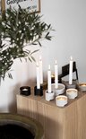 Illuminez la saison sombre avec de magnifiques photophores ultra simples. Le métal laqué mat des bougeoirs contraste avec le design doux qui capte la cire de bougie qui coule. Ils ont un petit trou en bas pour que vous puissiez facilement faire sortir les fragments de bougie. Ils sont disponibles en trois couleurs. Combinez-les de différentes couleurs avec les bougeoirs de la même série et découvrez comment les petites différences peuvent être unies en parfaite harmonie - par exemple sur le magnifique plateau assorti de Singles. Conception : VE2