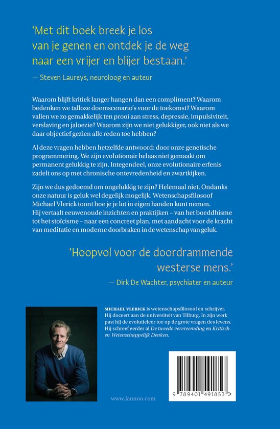 Zijn we dus gedoemd om ongelukkig te zijn? Helemaal niet. Ondanks onze natuur is geluk wel degelijk mogelijk. Wetenschapsfilosoof Michael Vlerick toont hoe je je lot in eigen handen kunt nemen. Hij vertaalt eeuwenoude inzichten en praktijken - van het boeddhisme tot het stoïcisme - naar een concreet plan, met aandacht voor de kracht van meditatie en moderne doorbraken in de wetenschap van geluk.