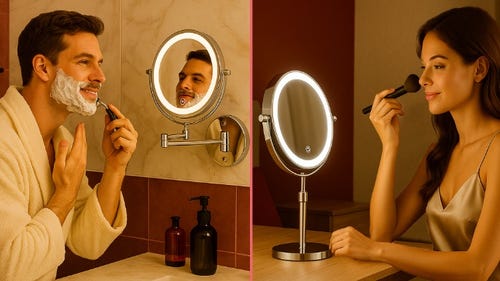 Een make-up spiegel is niet alleen een handige accessoire om je make-up aan te brengen, maar ook ideaal om je wenkbrauwen te epileren of je huid van dichtbij te bekijken. Make-up spiegels zijn er in allerlei varianten en kleuren. Stijlvolle make-up spiegels met vergrotende glazen om neer te zetten of om op te hangen, make-up spiegels met verlichting en batterijen, uitklapbare spiegels en ontwerpen met spiegelglas aan beide zijden. Bol heeft een breed assortiment aan make-up spiegels van verschillende merken, denk aan Mirlux, Royals of Bayt. Bekijk het ruime assortiment aan make-up spiegels op bol en kies de juiste spiegel voor jou!
